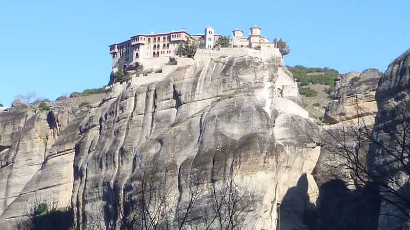 My favorite part was a town next to a big city separated by lots of towering whole rocks with monasteries on top of most of them. The monasteries on top of the rocks are put on top of flat topped rocks and where they did not put the monasteries there are trees and bushes. The city is called Kastaraki and the area is called Meteora. It was my favorite part of the whole stay in Greece, because the rocks had tons of caves in all of the rocks that the monks use to live in instead of monasteries. We saw one cave that had windows carved in to the walls. In one fo the monasteries, they had a net that the monks used to use to get up themselves and supplies up to the monasteries . Meteora and Kastaraki are my favorite places in Greece.